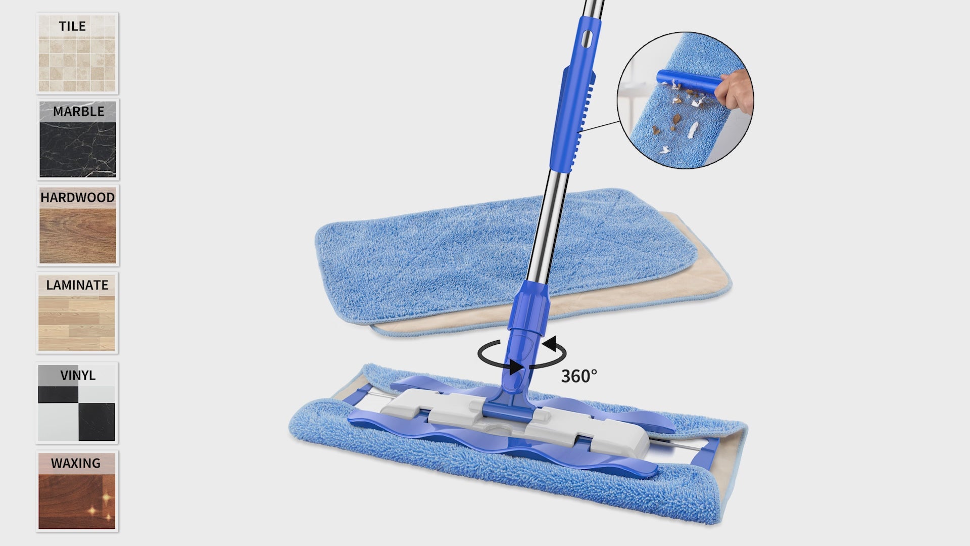 - DURABLE CONSTRUCTION - Built with durable plastic and sturdy stainless steel handle, inlcudes 3 reusable microfiber cloths and 1 dirt removal scrubber, applies to all kinds of floor such as hardwood, tile, marble, laminate, vinyl, make boring chore of cleaning your floors easy and effortless