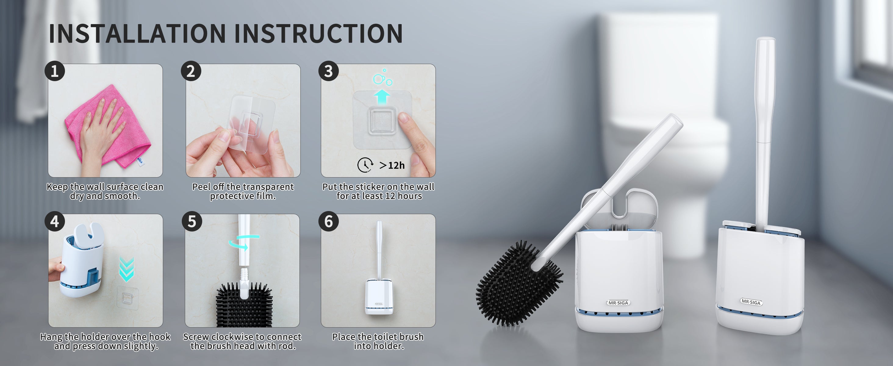 - DURABLE CONSTRUCTION & WALL MOUNTED DESIGN : Durable and flexible TPR fibers create long lasting bristles for strong cleaning ability but won't scratch the toilet bowl. Wall mounted design without drilling for easy storage, it also can be stored with floor standing.
