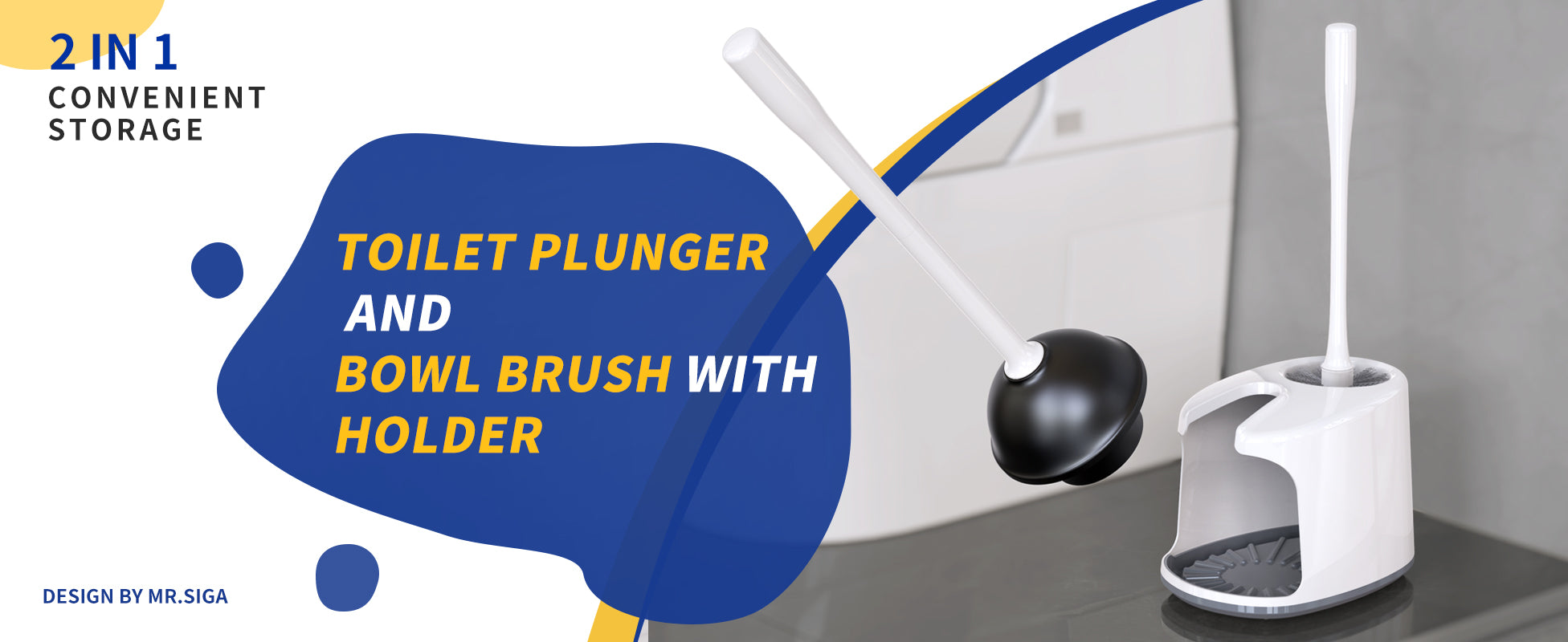 - 2 in 1: MR.SIGA toilet plunger and bowl brush combo contains a high efficient toilet brush, a powerful toilet plunger and a two-compartment steady holder. Convenient space saving stylish design and sanitary storage keep your bathroom neat, clean and well organized, it's a must-have accessory for your toilet cleaning.
