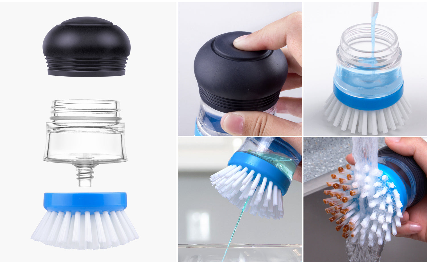 Soap Dispensing Palm Brush-Use it everyday to clean your pan, pot, dish, sink, stoves, kitchen utensils, cast iron, countertop etc