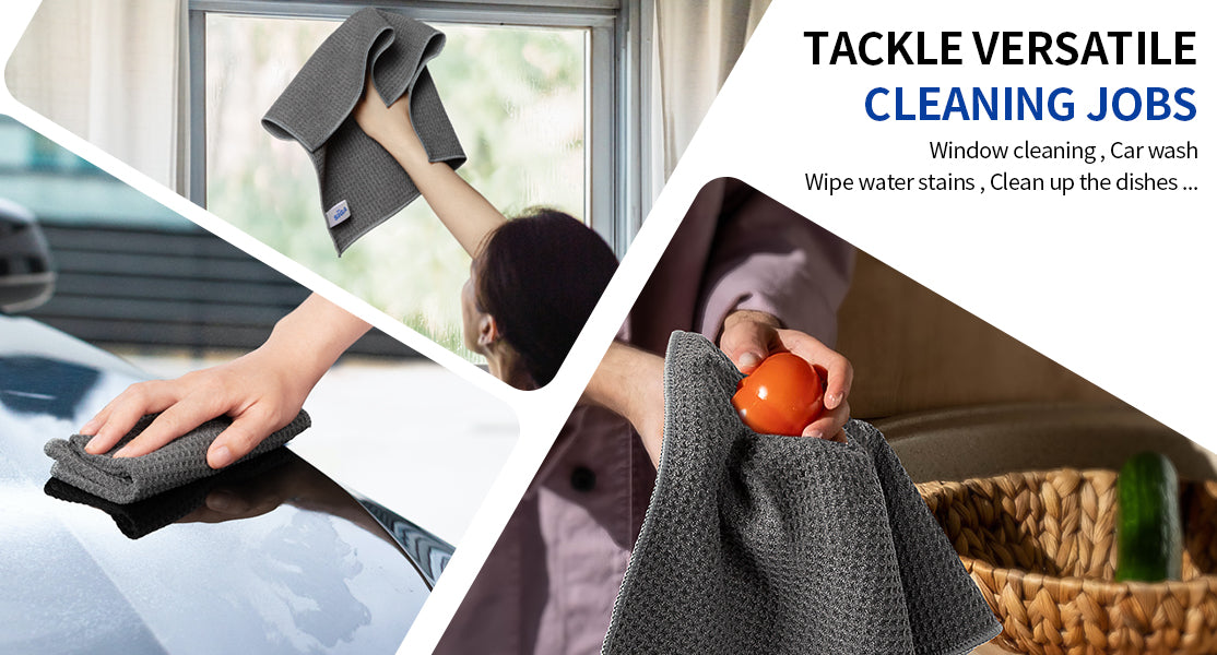 - TACKLE VERSATILE CLEANING JOBS: The waffle pattern texture enhances their cleaning ability by providing extra scrubbing power for capturing dirt, dust, and spills. Not only that, you will be impressed they are also terrific duster that removes fingertips from silverware and glasses effectively.