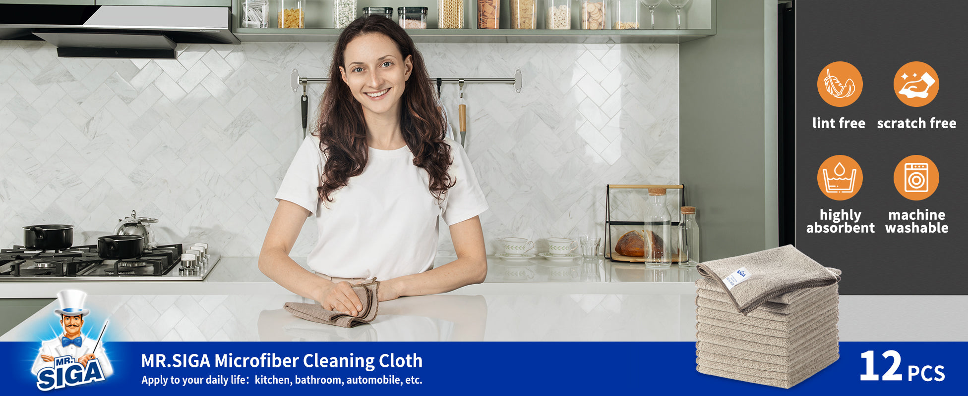 MR.SIGA Microfiber Cleaning Cloths, All-Purpose Surface Microfiber Towels, Streak Free Cleaning Rags, Pack of 12, Wheat, Size 32 x 32 cm(12.6 x 12.6 inch)