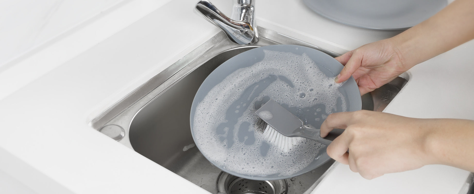 MR.SIGA Dish Brush with Non Slip Handle Built-in Scraper, Pack of 2