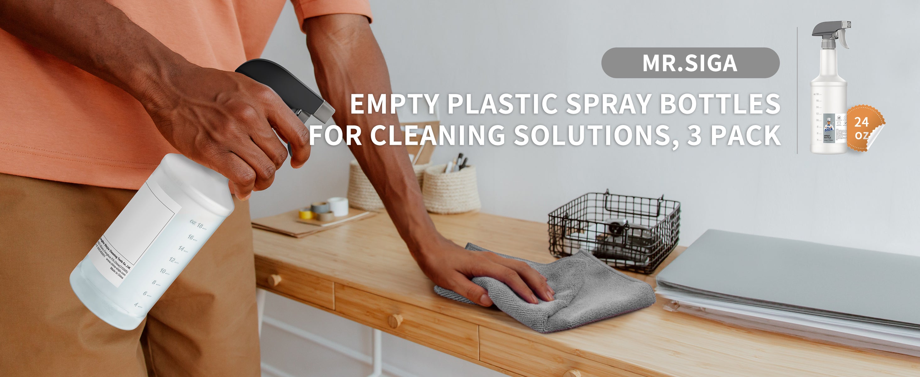 MR.SIGA 24 oz Empty Plastic Spray Bottles for Cleaning Solutions, Heavy Duty Household Reusable Spray Bottles with Measurements and Adjustable Leak Proof Nozzle, 3 Pack