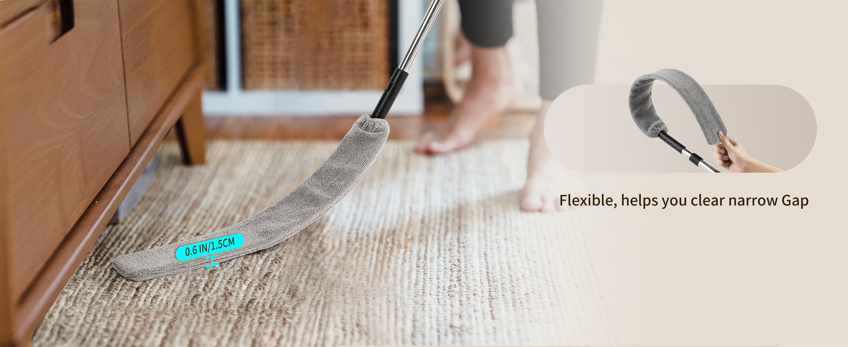 - EXTRA LONG DUSTER HEAD & FLEXIBLE - Features a 19.7 inch(50 cm) extra long microfiber duster head, bendable and flexible, which brings convenient cleaning experience and help reach into corners, gaps and hard to reach places.