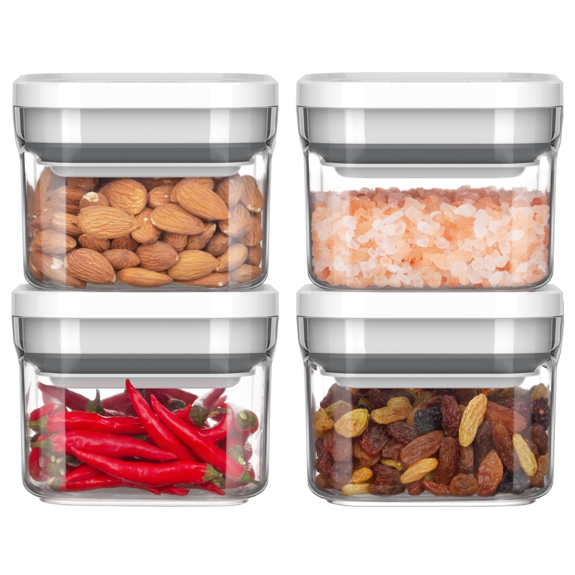 - AIRTIGHT PANTRY ORGANIZATION CONTAINER: Keeps your food and snacks fresher and drier with the airtight lid. Great for storing candies, rose salt, sugar, beans, spices and more. It's also a great gift for your family and friends. 1 set includes 4 Small containers(0.36 L/12 oz). Measures: L x W x H 4.2" x 4.2" x 3.2"