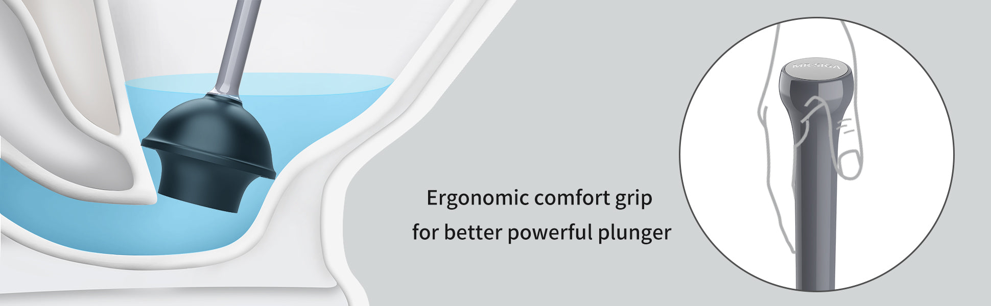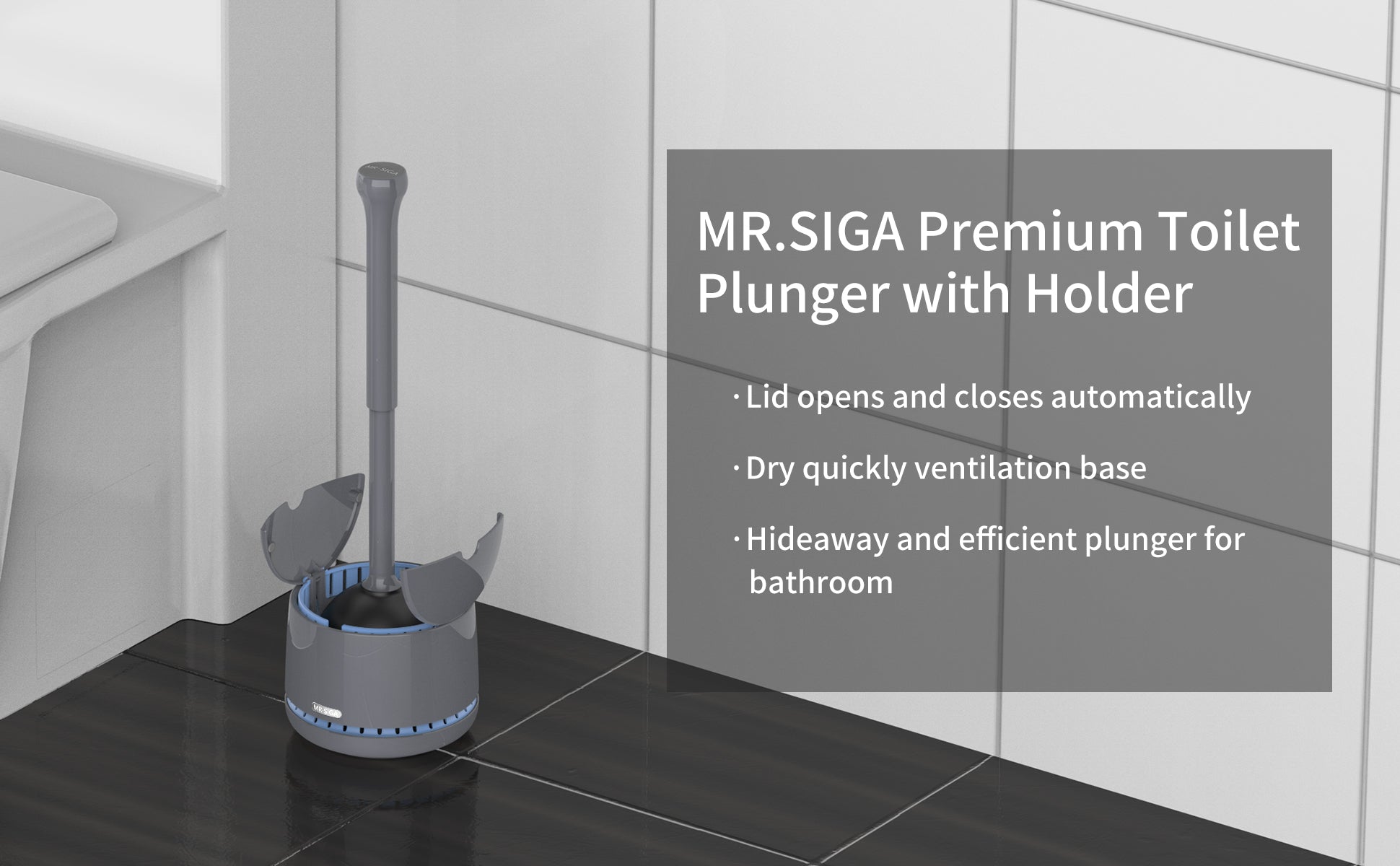 MR.SIGA Toilet Plunger with Holder, Heavy Duty Plunger with Sturdy Handle for Toilet Cleaning, Gray