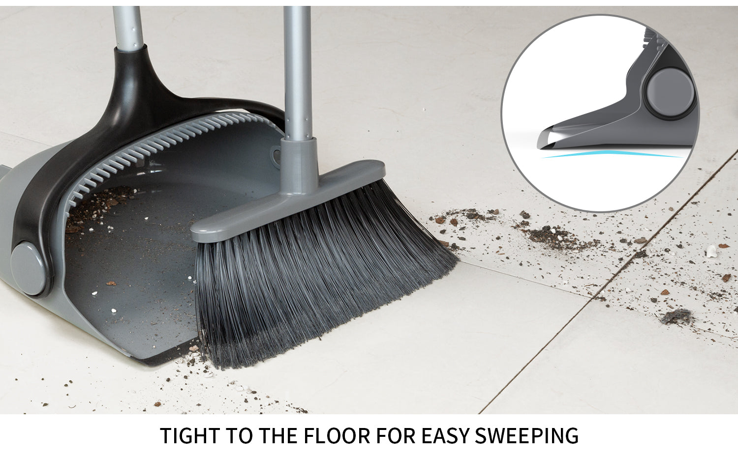 - Enhanced 4-layer dense bristles with flare-tip design captures fine dust and pet hair effectively. Rubber lip lies flat against cleaning surface which allows for maximum pickup. When the broom head collects hair, just comb it out through the built in dustpan teeth