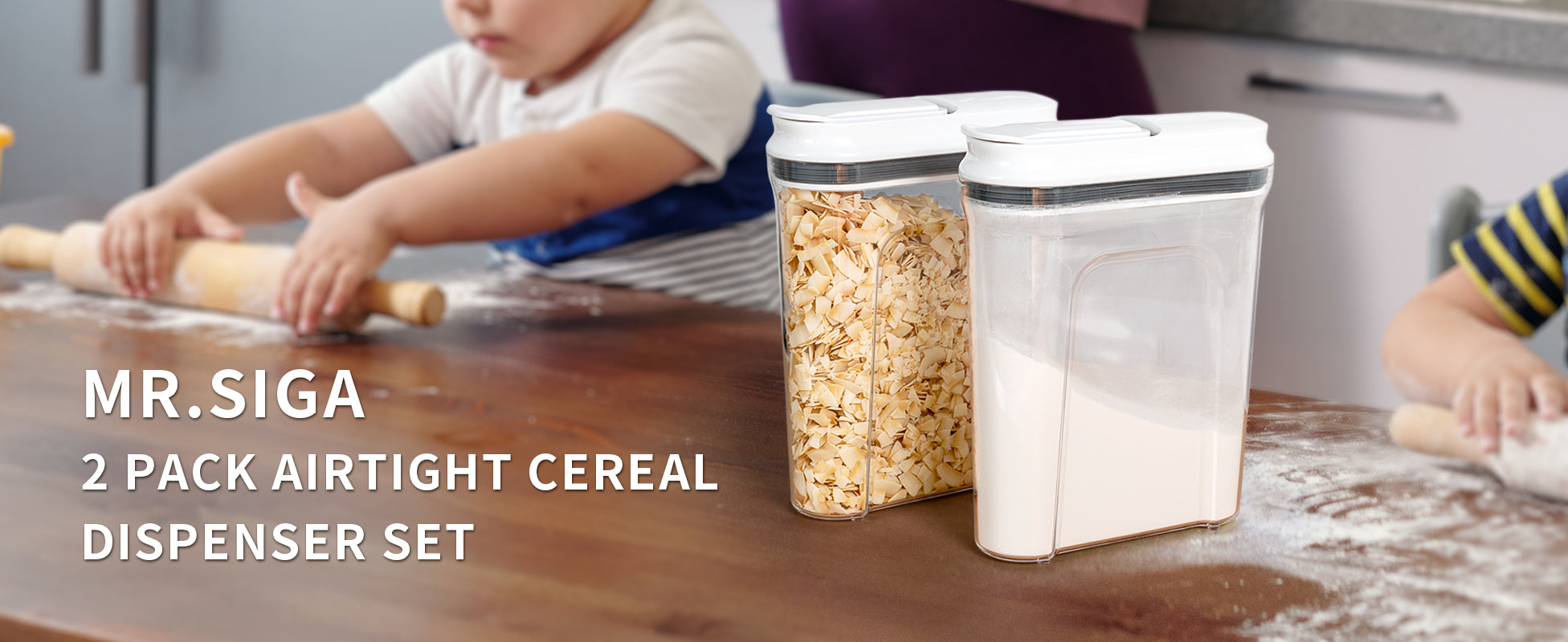 - ERGONOMIC GRIP: MR.SIGA cereal storage containers are designed with contoured shape, so it's very easy for you to grab and hold comfortably in hand even when storage dispenser is wet and full. With these airtight cereal canisters your food and snacks will stay fresh and dry and your cabinets will be well organized.