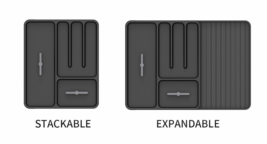 - STURDY CONSTRUCTION: MR.SIGA expandable flatware organizer is made of durable plastic which ensures it's long lasting. Comes with two pieces, one piece with 7 compartments and another expandable panel on the right for storing more silverware, cutlery, and kitchen utensils.