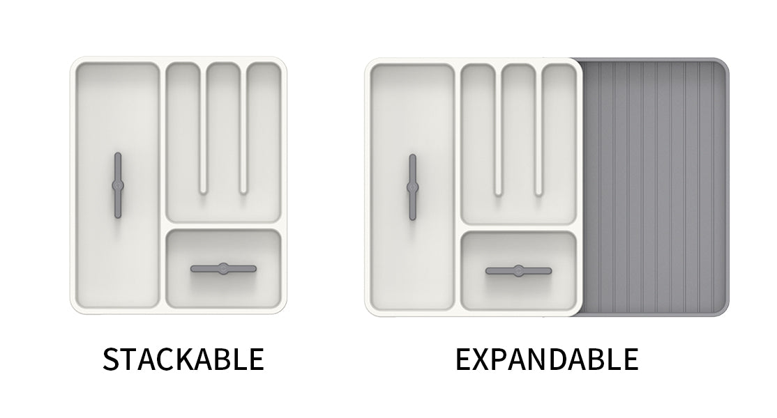 - STURDY CONSTRUCTION: MR.SIGA expandable flatware organizer is made of durable plastic which ensures it's long lasting. Comes with two pieces, one piece with 7 compartments and another expandable panel on the right for storing more silverware, cutlery, and kitchen utensils.