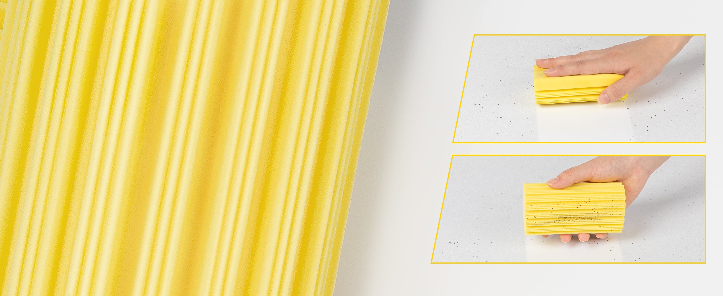 This damp scrub sponge duster is made from premium high density PVA materials, it absorbs large amount of water quickly and wipes dirt and dust easily without leaving streaks, making your cleaning so much easier