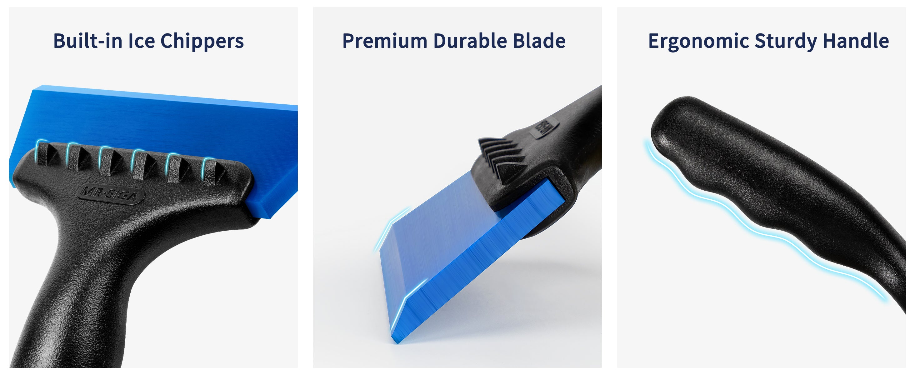 - BUILT IN ICE SCRAPER FOR CAR WINDSHIELD: This small glass squeegee can also be used as an ice ripper for quick windshield or window ice and frost removal, helping clear ice from your car faster.