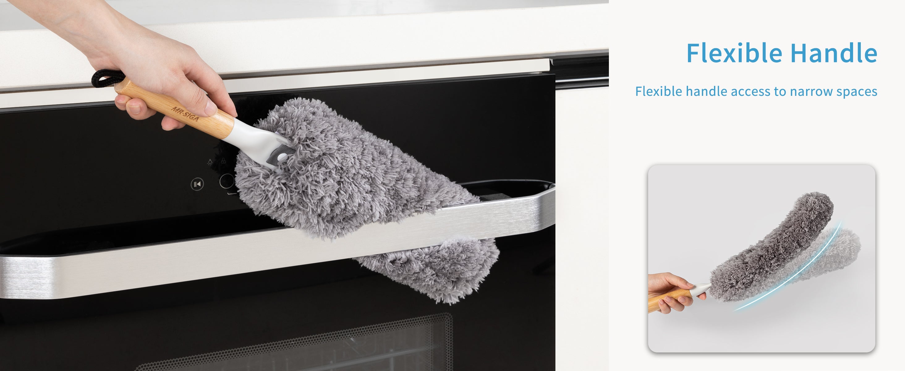 MR.SIGA Lint Free Microfiber Duster, Washable and Reusable Duster with Bamboo Handle and Replaceable Head, Duster for Household