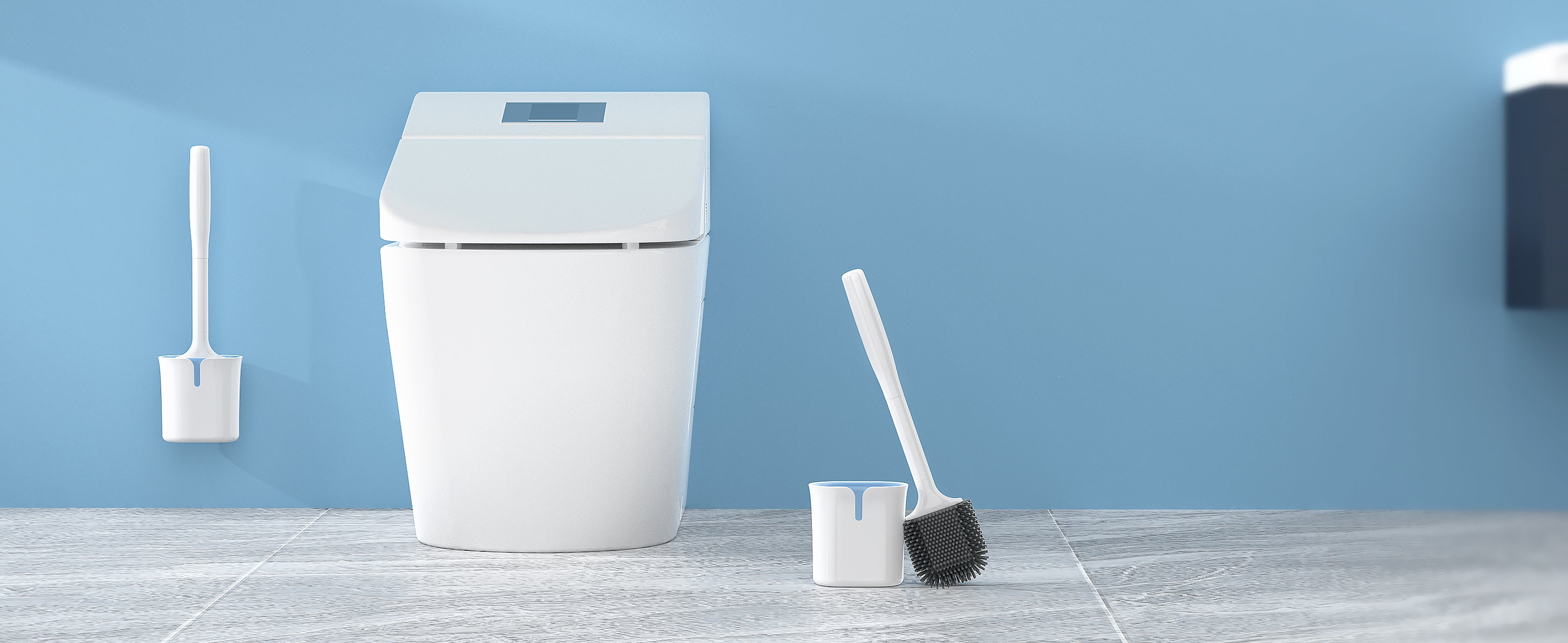 - DURABLE CONSTRUCTION and ELEGANT DESIGN. Durable and flexible TPR fibers create long lasting bristles for strong cleaning ability but won't scratch the toilet bowl. Wall mounted design without drilling provides easy storage, it also can be stored with floor standing.