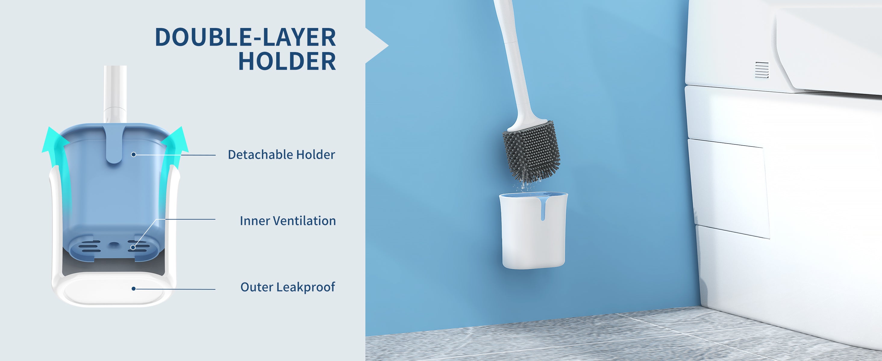 Durable and flexible TPR fibers create long lasting bristles for strong cleaning ability but won't scratch the toilet bowl- Wall mounted design without drilling provides easy storage, it also can be stored with floor standing.